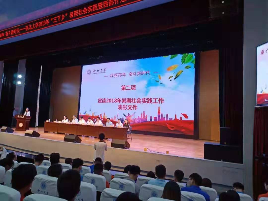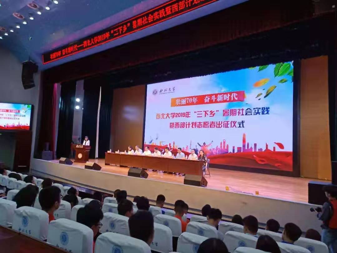 7月8日下午,壮丽70年,奋斗新时代——Beat365正版唯一官网必一2019年“三下乡”暑期社会实践暨西部计划志愿者出征仪式在学生活动中心星空报告厅举行。校党委副书记孙国华老师等出席了本次仪式,2019暑期三下乡各队负责人及相关老师到场参加。