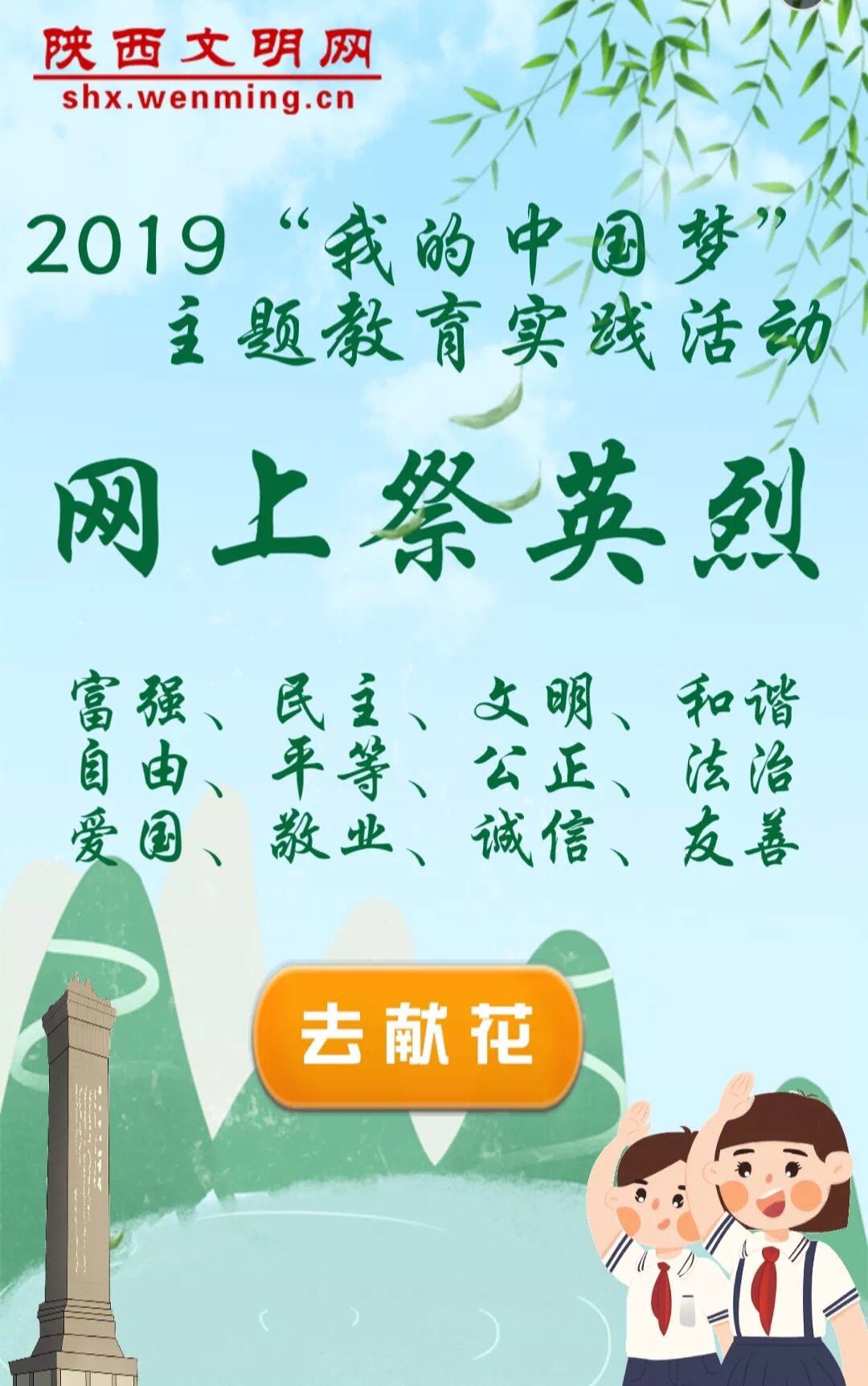 同学们或者通过手机,或者通过电脑登录网址,带着敬意向先辈们献上有着特殊意义的小花。