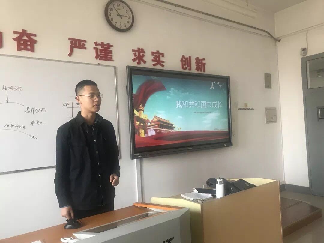 会议开始,盖丽娅同学向大家介绍了本次团会主题的时间背景。2019年是新中国成立70周年的重要节点,自新中国成立以来,国家发展迅速,尤其是改革开放以来,中国各方面建设与社会面貌更是发生了天翻地覆的变化;同时,我们这出生于新旧世纪之交的一代人,极为幸运地赶上了国家建设发展的好时代,见证了国家取得的一次次辉煌成就,跟随并陪伴着国家共同成长。接着,盖丽娅同学向大家展示了部分图片和视频,通过这些资料,同学们进一步深化了对本次团会主题的认识和理解。