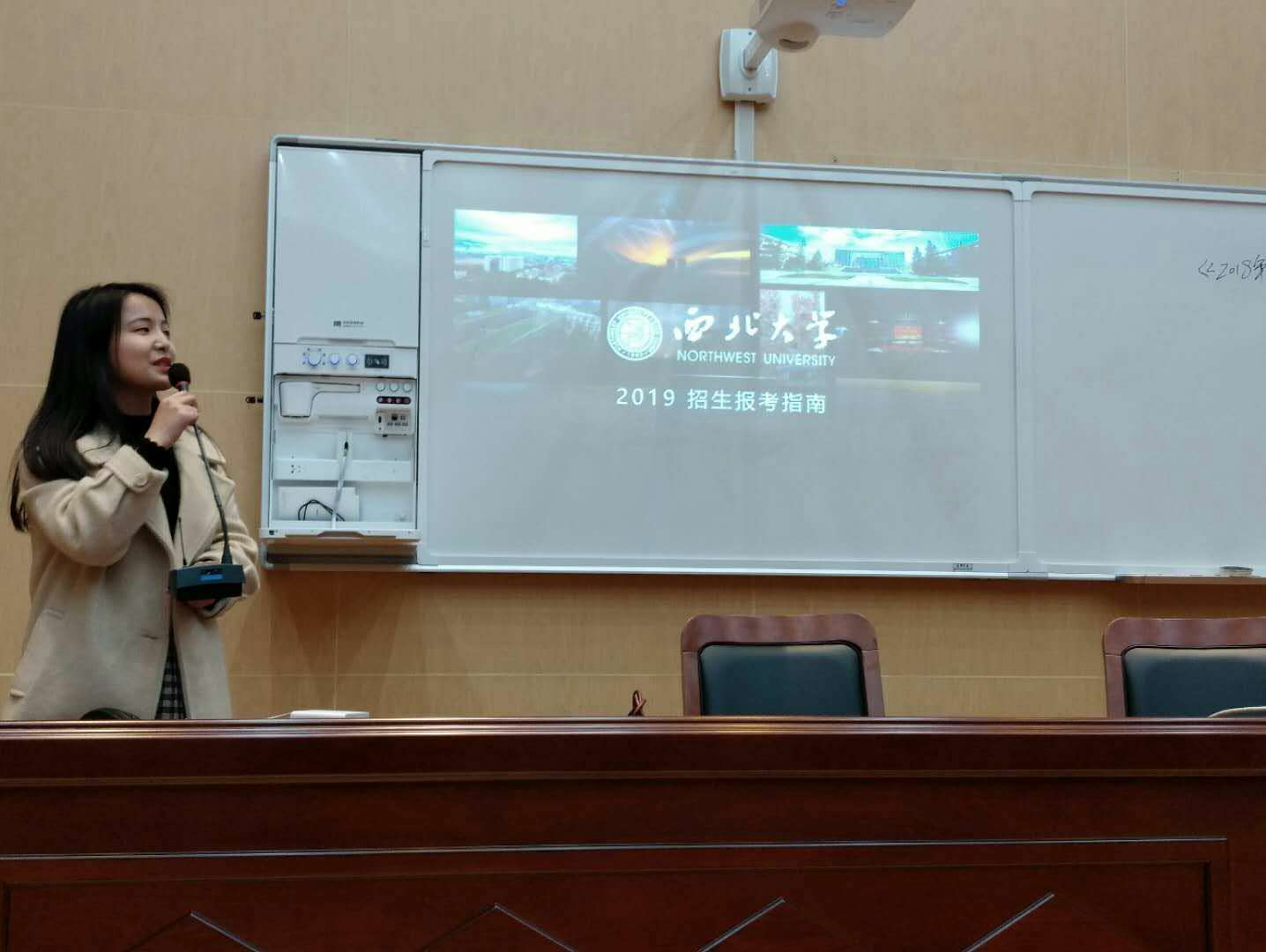 王雨欣同学负责主要的宣讲,她利用PPT首先向在场的高三学子们介绍了西安的基本情况,接着讲述了Beat365正版唯一官网必一的百年历史、发展现状、学科优势、杰出校友、荣誉称号、科研成就、学生活动、社会实践以及基础设施等基本情况,在讲解完成后,她还播放了Beat365正版唯一官网必一的招生宣传视频。