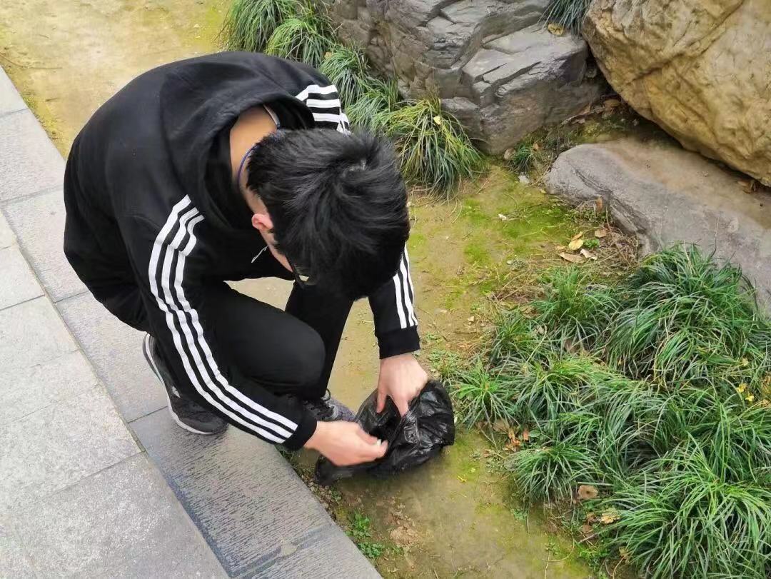 上午十一点半,同学们来到丰庆公园的北门汇合,对本次志愿活动进行交流与总结。同学们将手上收集的垃圾与烟头分类后扔进了垃圾箱,并发表了自己的感想。