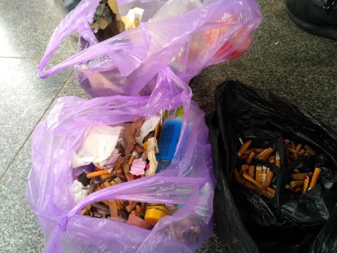 同学们观察到,许多吸烟的市民在看到同学们蹲下捡烟头时,会比较自觉的将烟头扔在正确的地方。尽管有相关工作人员进行垃圾清理,同学们仍收集了两大包垃圾和一大袋子烟头,大家纷纷表示体会到了清洁人员的不易与艰辛,更加理解了不乱丢垃圾的重要性。