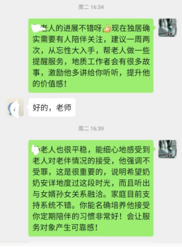 然后我想要分享的就是我们服务对象的一些故事。在我们后期进行社区群体的外展服务时,我们的学生在征得老人同意的情况下,与他们定期进行电话联系,为他们提供聊天等关怀服务。这其中有遇到过困难和令人心情沉重的事情,比如说有失独患病的老人,也有生命垂危的老人。我们的学生团队在为他们提供关怀乃至是哀伤辅导的同时,也收获了一些来自于老人们的关爱。这是非常令人感动的,这也证明了在特殊情况下,我们的服务和陪伴是非常值得的。