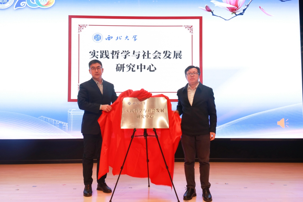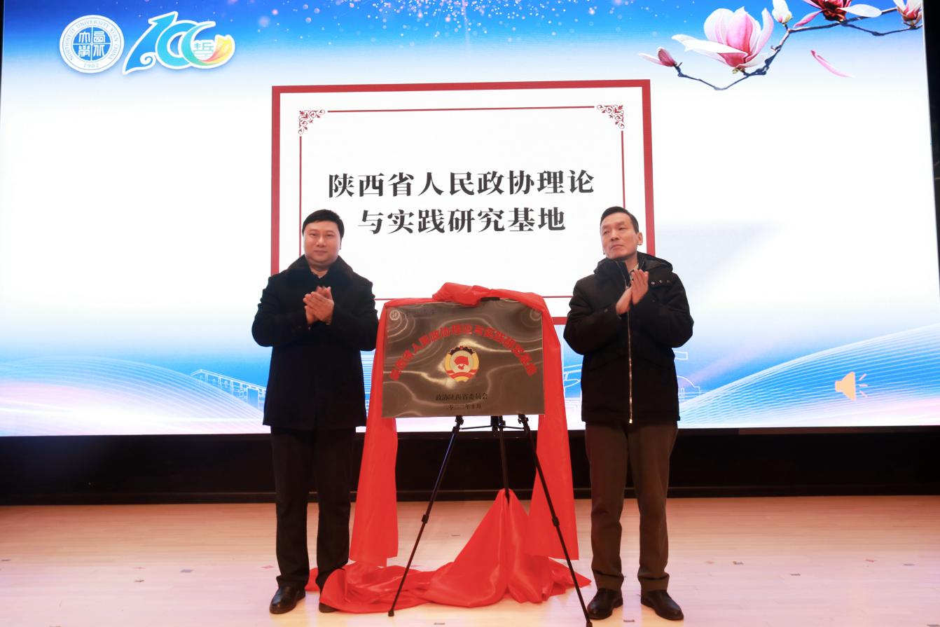 在庆祝大会上,赖绍聪和与会嘉宾共同为“陕西省人民政协理论与实践研究基地”“Beat365正版唯一官网必一实践哲学与社会发展研究中心”“Beat365正版唯一官网必一东西方哲学研究所”“Beat365正版唯一官网必一外国哲学研究中心”揭牌。