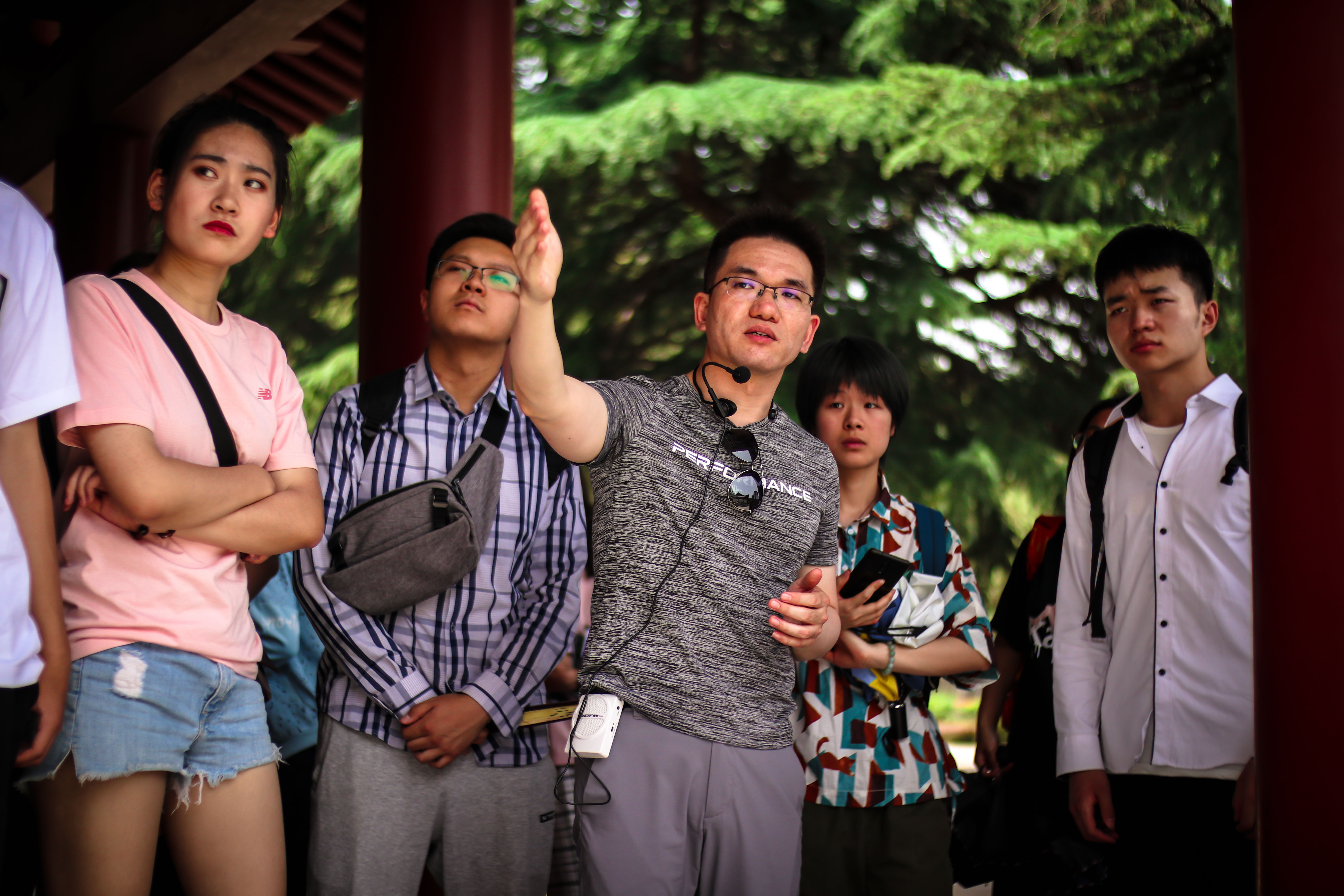 走在昭陵司马道上,两旁是凌烟阁二十四功臣像,袁老师以此为本站的起点,开始进行儒家哲学与礼制文化现场教学。