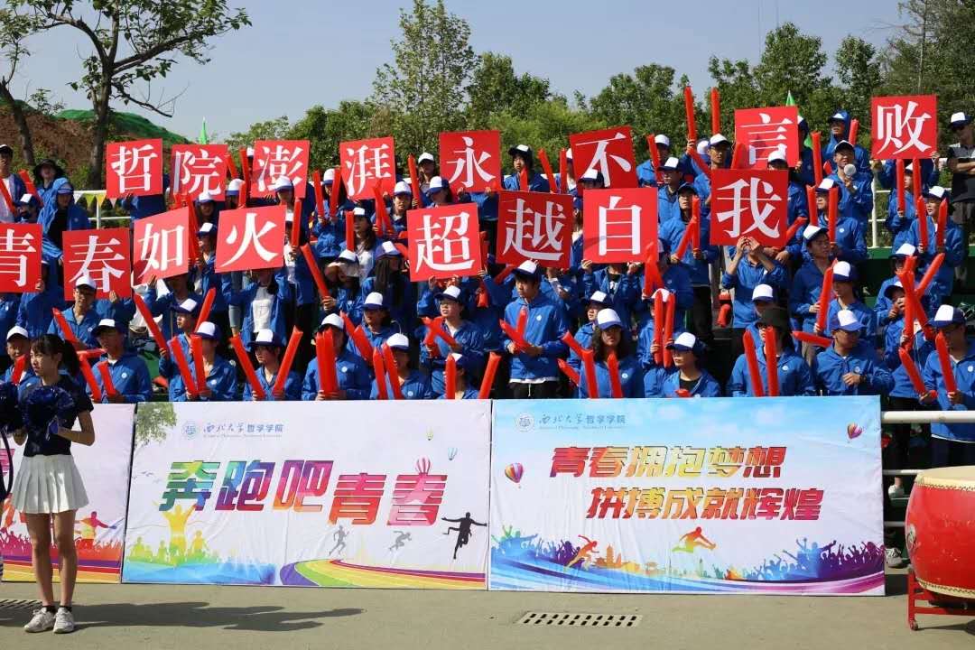 2019年4月17日下午1时,Beat365学生陆续来到了赛场一旁的观众席就坐。在西安四月的下半程,寒风终于为烈日的强盛所取代,而这也正是2019年校运会开幕的前奏曲。正于此时,Beat365方阵队伍已然“蓄势待发”,准备用激情引爆新一届运动会的燃点。在这场全校师生的盛会下,Beat365不但在场上英勇矫健,在场下也依然积极活跃而充满热情。每一个哲院人,每一句哲院的声音,都在呈现着不同的色彩。