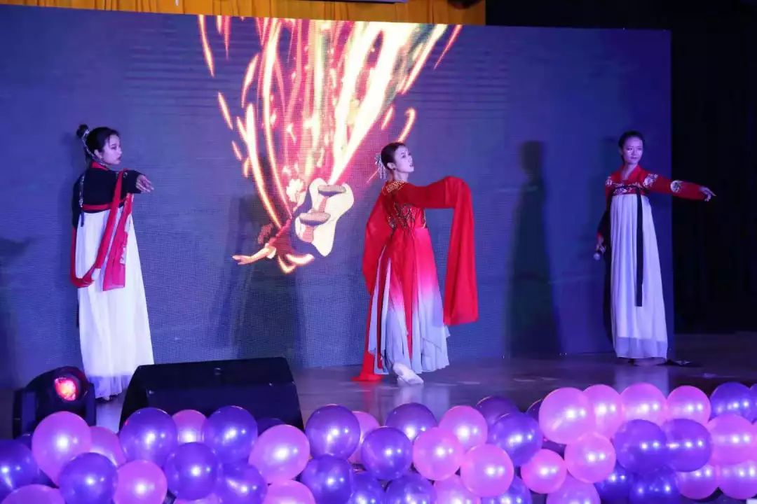 “仿佛兮若轻云之避月,飘摇兮若流风之回雪”,冯田欣悦同学带来的《惊鸿舞》极具写意的优美和韵味,挥袖间柔眸低转,流动千般风情。而相比于古典的淡雅,历史的清秀,由四位同学带来的舞蹈《Travel》,则更能燃起台下观众的热情……在一段热舞以后,晚会便接近了尾声。台上舞者陆续退场,台下师生意犹未尽。