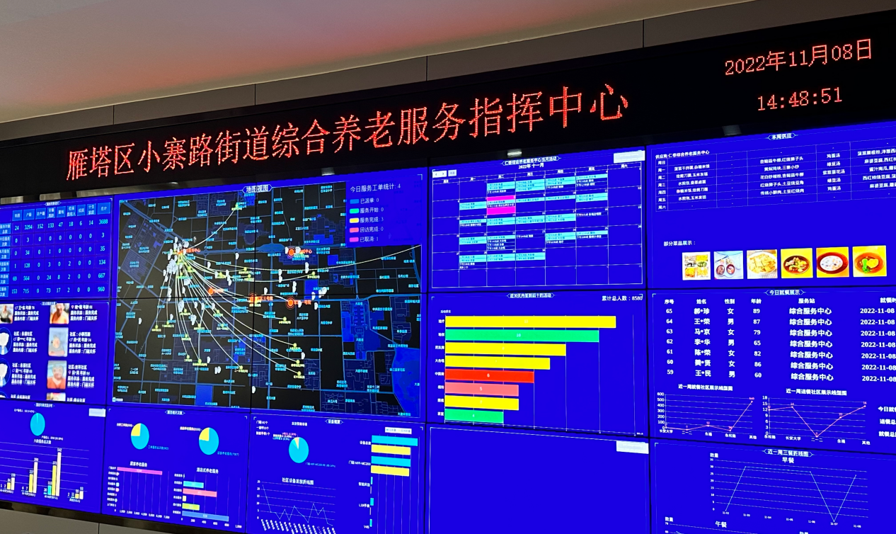 随后中心负责人向团队介绍了数字化养老服务指挥中心。调研团队通过中心负责人的讲述和演示,了解到该中心利用技术手段,数字化服务辖区内站点的老年人信息、活动情况、服务频率等,开辟了一条智慧化新型养老道路。