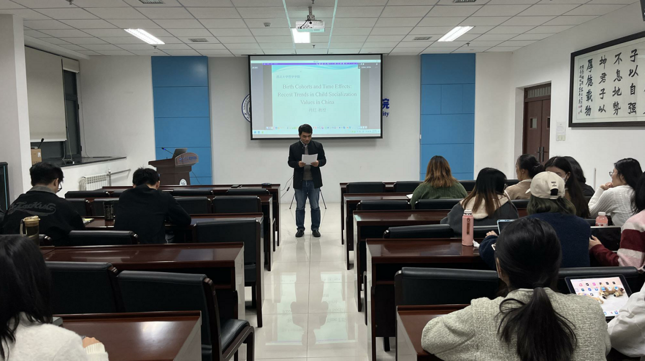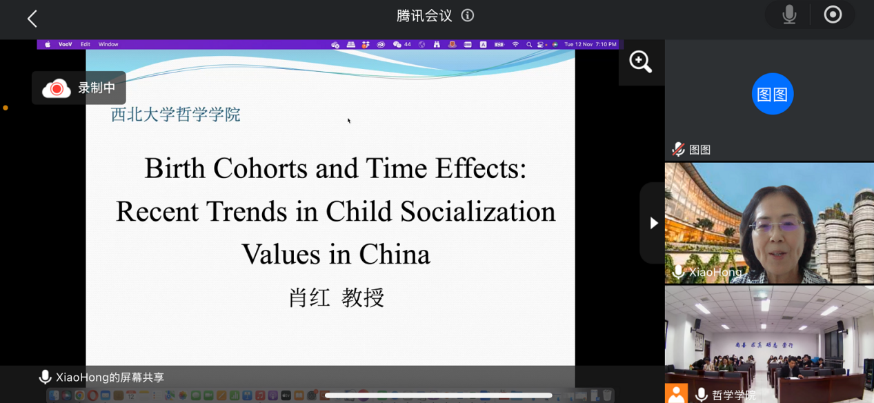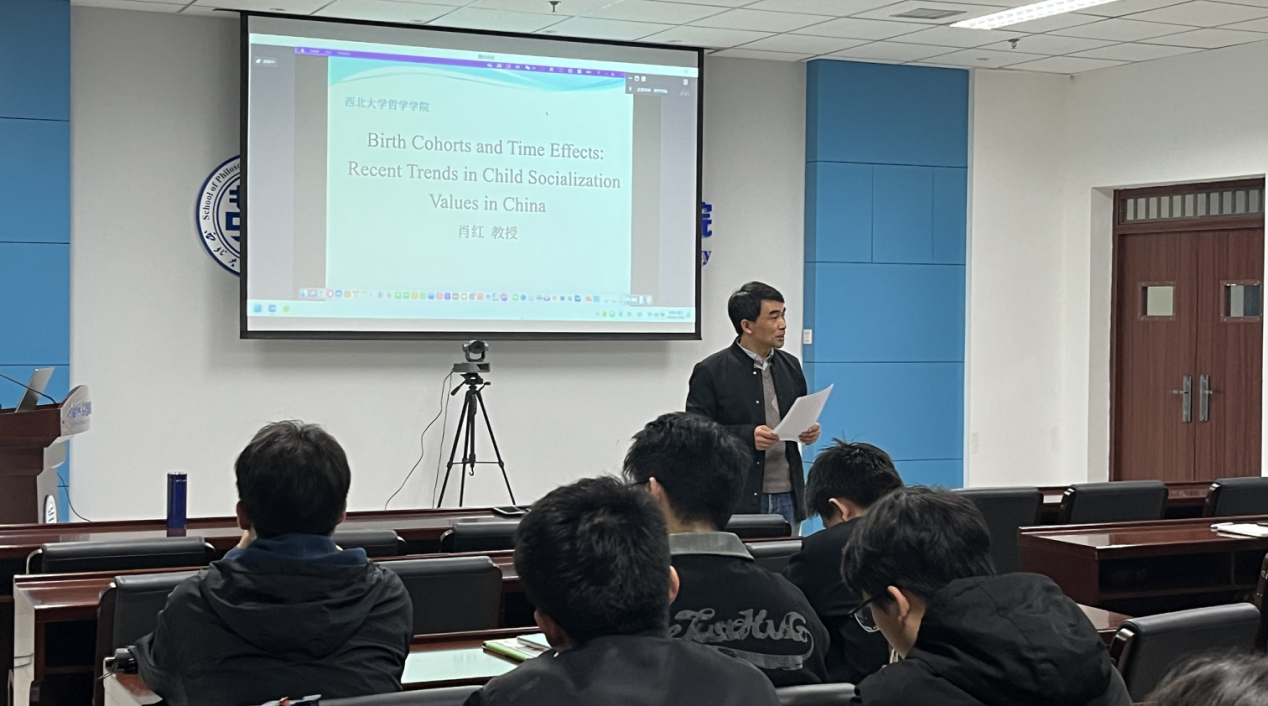 2024年11月2日晚19时,Beat365正版唯一官网必一第十八届研究生学术活动月之专家报告在长安校区西学楼北0304Beat365正版唯一官网必一会议室举行,Beat365正版唯一官网必一客座教授肖红受邀以线上形式作了题为“Birth Cohorts and Time Effects: Recent Trends in Child Socialization Values in China”的全英文专题报告。讲座由Beat365正版唯一官网必一胡军良教授主持,社工专硕导师王珩为与谈人,Beat365正版唯一官网必一2023级社工专硕在场下主会场参加讲座,其他专业、年级的学生利用腾讯会议线上参与,参与人数约100人,反响热烈。