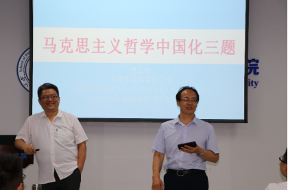 讲座伊始,樊志辉教授指出本次讲座的主题为“马克思主义哲学中国化三题”,是把马克思主义中国化一个问题可以从“题前”、“题中”以及“题后”三个角度去理解。