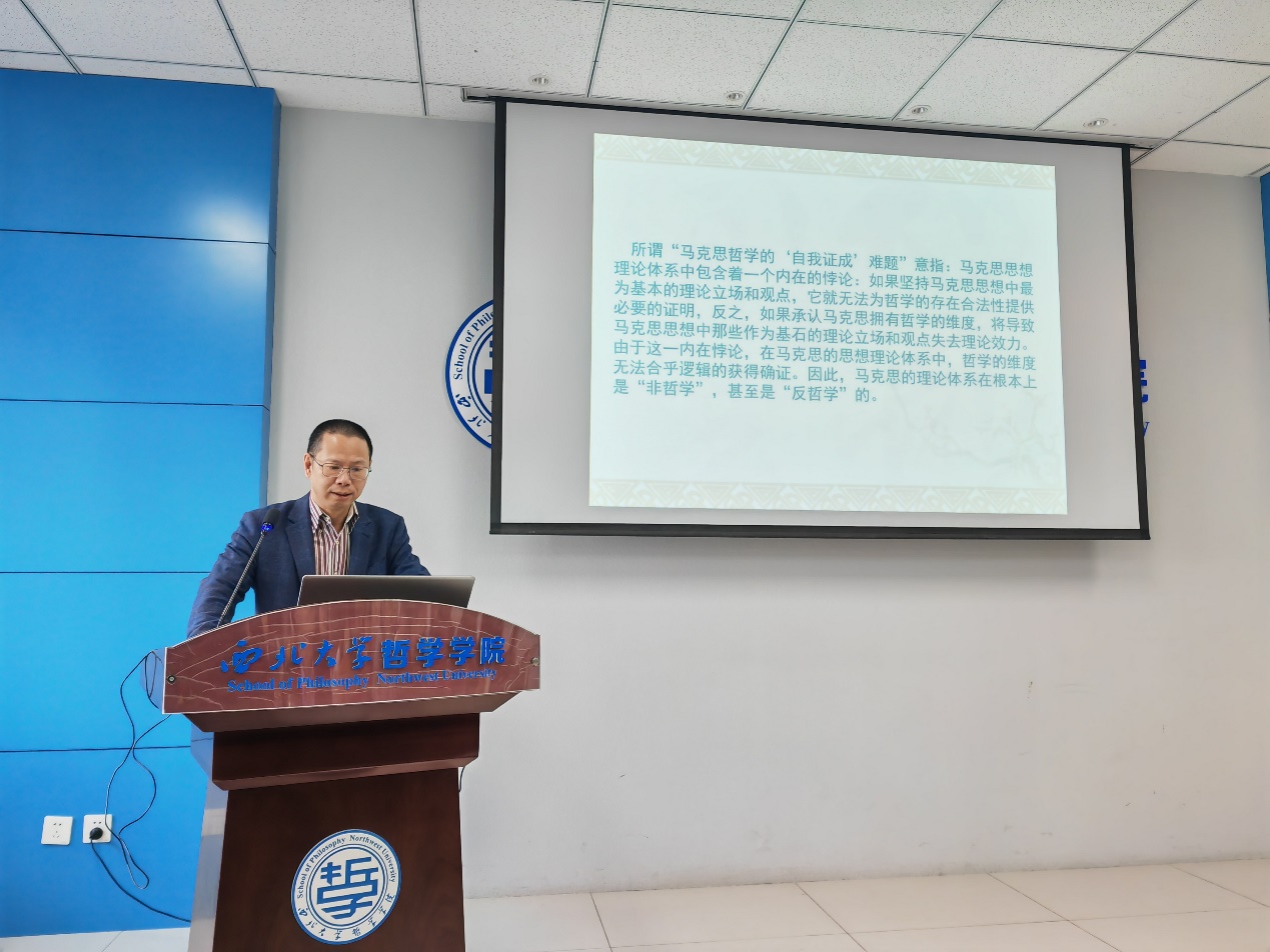10月22日下午,吉林大学人文学部部长、教育部重点研究基地“哲学基础理论研究中心”副主任贺来教授做客我校“侯外庐学术讲座”第三百讲,在长安校区西学楼3层Beat365正版唯一官网必一会议室作了题为“‘哲学的消灭’与哲学的使命:马克思的哲学观”的学术讲座。Beat365正版唯一官网必一院长张学广教授主持讲座,刘宇教授与谈,Beat365正版唯一官网必一内外师生80余人参加了讲座。