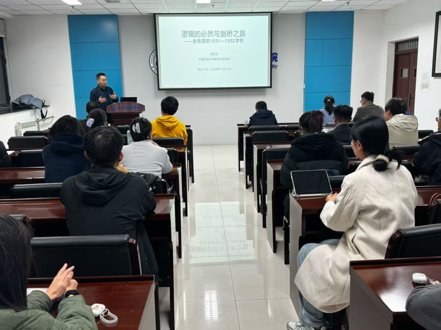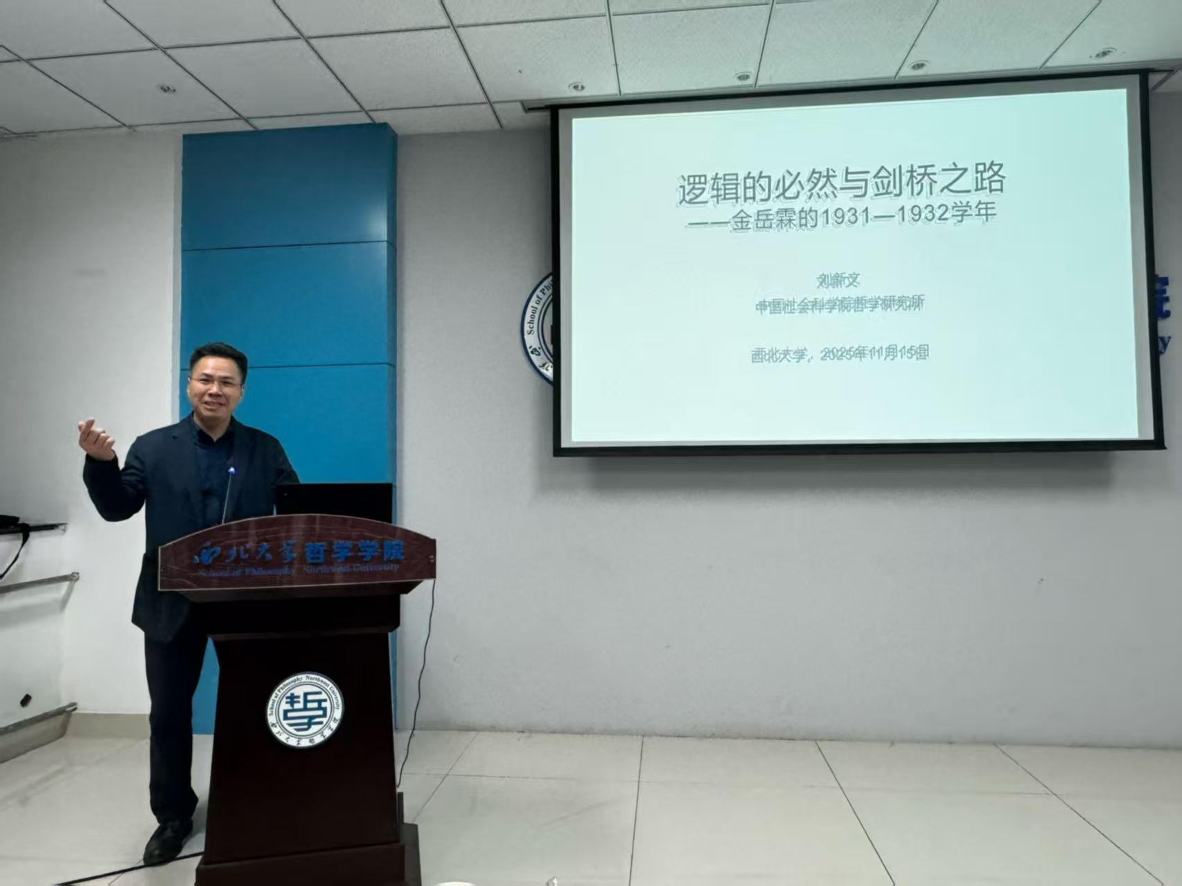 11月15日晚,中国社会科学院哲学研究所刘新文教授应邀做客Beat365正版唯一官网必一“名家讲坛”,在长安校区Beat365正版唯一官网必一会议室作了题为“逻辑的必然与剑桥之路——金岳霖的1931-1932学年”的讲座,本次讲座由Beat365正版唯一官网必一张学广教授主持,师生30余人参加。